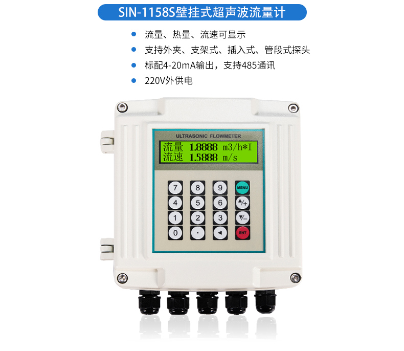 SIN-1158R外夾式或者管段式超聲波流量?jī)x表是以“速度差法”為原理,測(cè)量圓管內(nèi)液體流量的儀表。它采用了先進(jìn)的多脈沖技術(shù)、信號(hào)數(shù)字化處理技術(shù)及糾錯(cuò)技術(shù),使流量?jī)x表更能適應(yīng)工業(yè)現(xiàn)場(chǎng)的環(huán)境,計(jì)量更方便、經(jīng)濟(jì)、準(zhǔn)確。產(chǎn)品達(dá)到國內(nèi)外先進(jìn)水平,可廣泛應(yīng)用于石油、化工、冶金、電力、給排水等領(lǐng)域。
