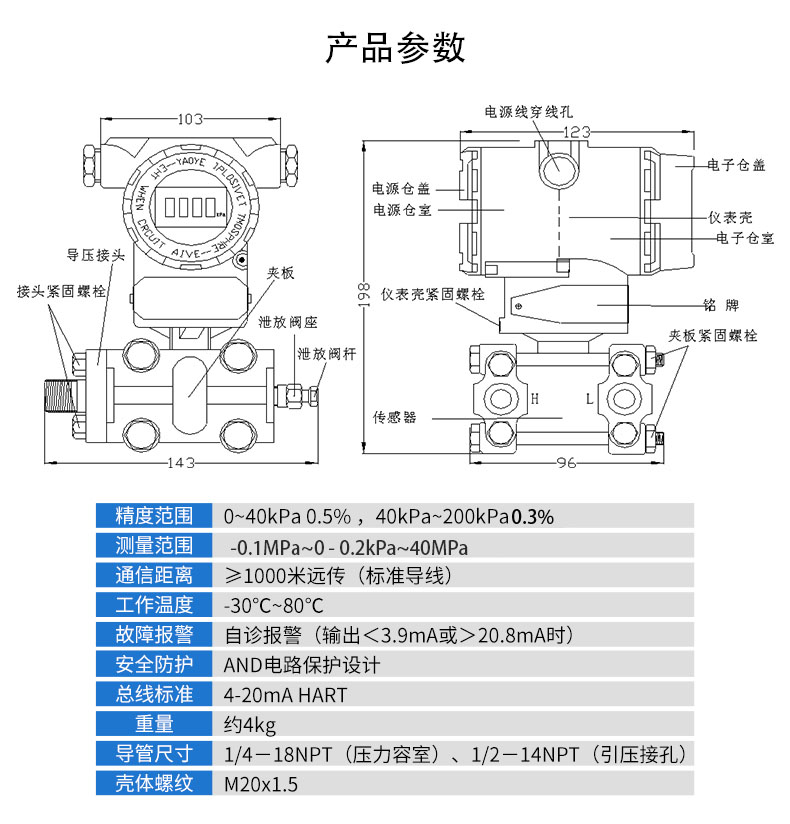 SIN-3051系列壓力變送器利用差動電容檢測的原理,當膜片兩側壓力不一致時,使容室中測量膜片產生位移,其位移量與壓力差成正比,通過電路處理將電容變化量轉換成4~20mA的二線制電流或電壓信號,可帶上458協(xié)議或者HART通訊協(xié)議功能。該變送器具有堅固抗振,量程,零點和阻尼現(xiàn)場連續(xù)可調。