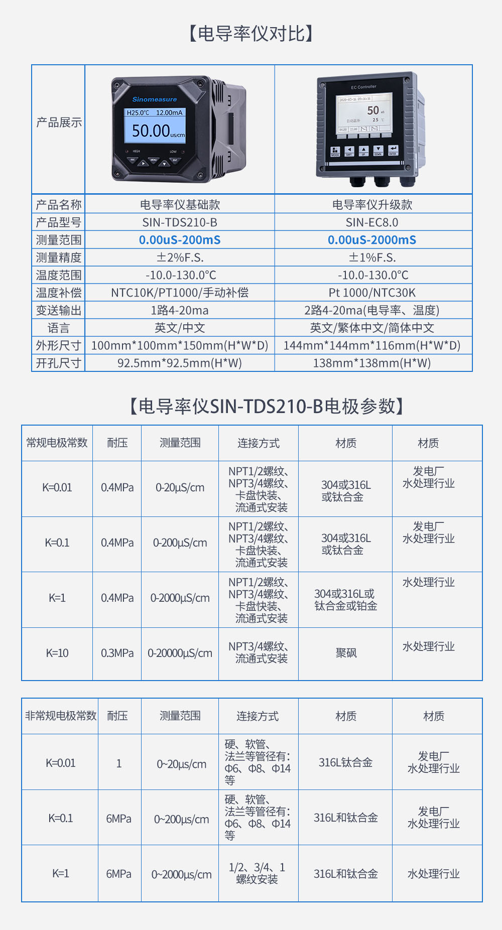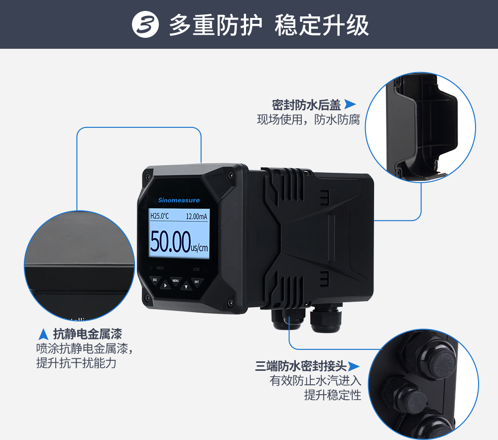 SIN-TDS210-B工業(yè)電導(dǎo)率儀表,廣泛應(yīng)用于火電、化工化肥、冶金、環(huán)保、制藥、生 化、食品和自來水等行業(yè)??刂破髦饕獙θ芤褐械碾妼?dǎo)率/總?cè)芙夤腆w/ 電阻率和溫度進(jìn)行連續(xù)監(jiān)測。