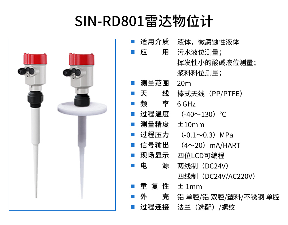 聯(lián)測_SIN-RD801雷達料位計_適用于液體,微腐蝕性液體_