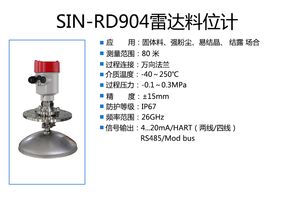 90 系列傳感器是 26G 高頻雷達(dá)式物位測量儀表,測量最大距離可達(dá) 80 米。