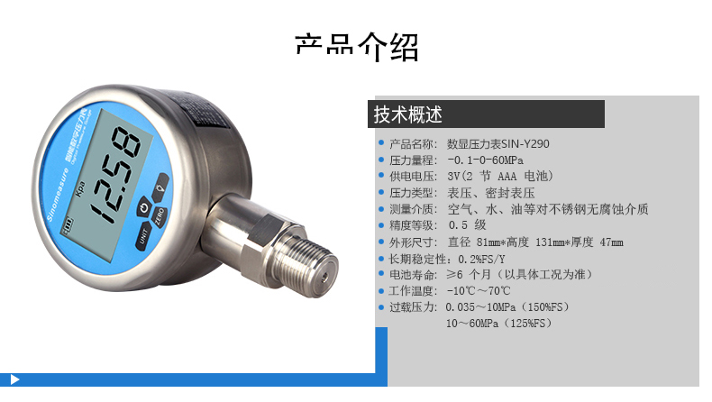 聯(lián)測數(shù)顯壓力表Y290,內(nèi)置高精度壓力傳感器,能夠 準確的實時顯示壓力,并且具有精度高,長期穩(wěn)定性好 的特點。