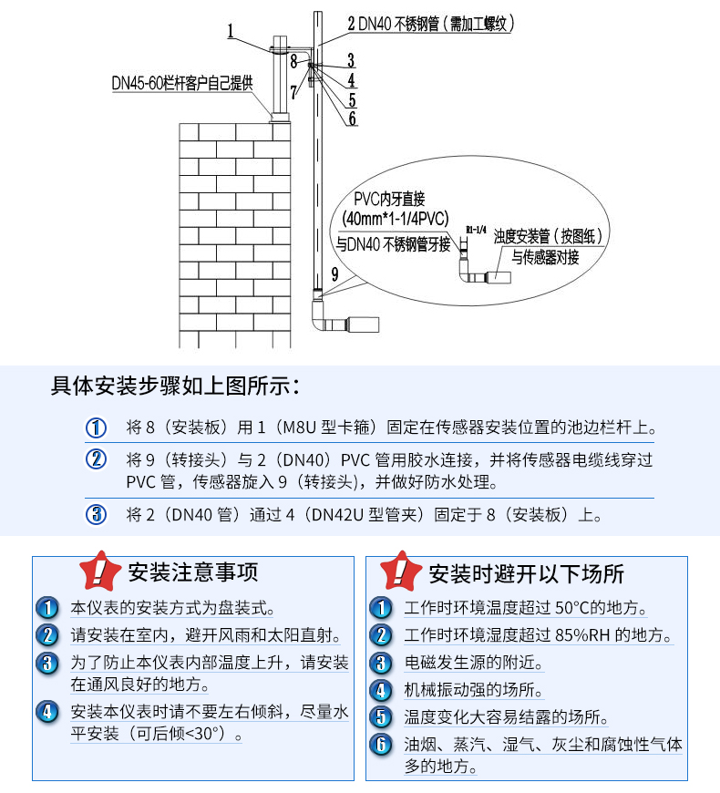 濁度/污泥濃度傳感器的原理基于組合紅外吸收散射光線法,應用ISO7027方法可以連續(xù)并精確地測定濁度或污泥濃度。